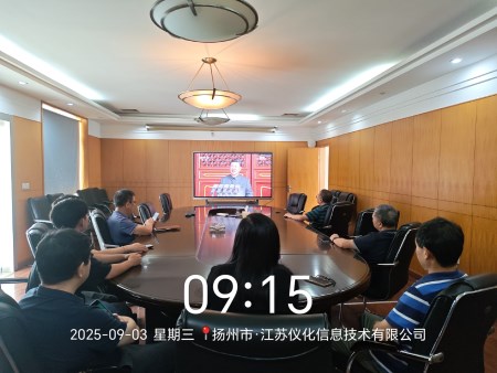2025年9月3日上午,江苏仪化信息技术有限公司组织全体员工观看了纪念中国人民抗日战争暨世界反法西斯战争胜利80周年大会直播盛况。